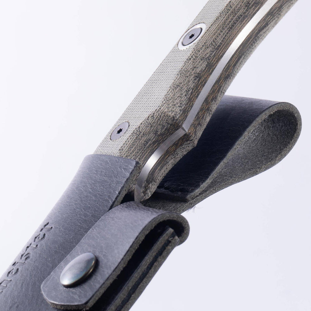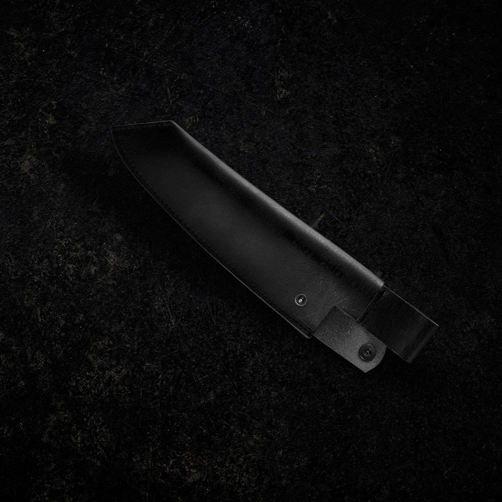 Gear up for the great outdoors with the Messermeister Leather Belt Sheath, designed specifically for the Overland Chef 8" Camp Knife. Handcrafted in Holland from premium, oil-tanned full-grain leather, this sheath features a rustic matte black finish that’s tough enough for the wild but stylish enough for any setting. Custom-fitted for a secure hold, it’s built with a snap closure and a low-slung belt loop for easy access wherever adventure takes you. Durable, rugged, and undeniably cool, this sheath offers serious protection and timeless craftsmanship. (Knife not included.) When only the best will do, trust 100% Messermeister quality to keep your blade adventure-ready.