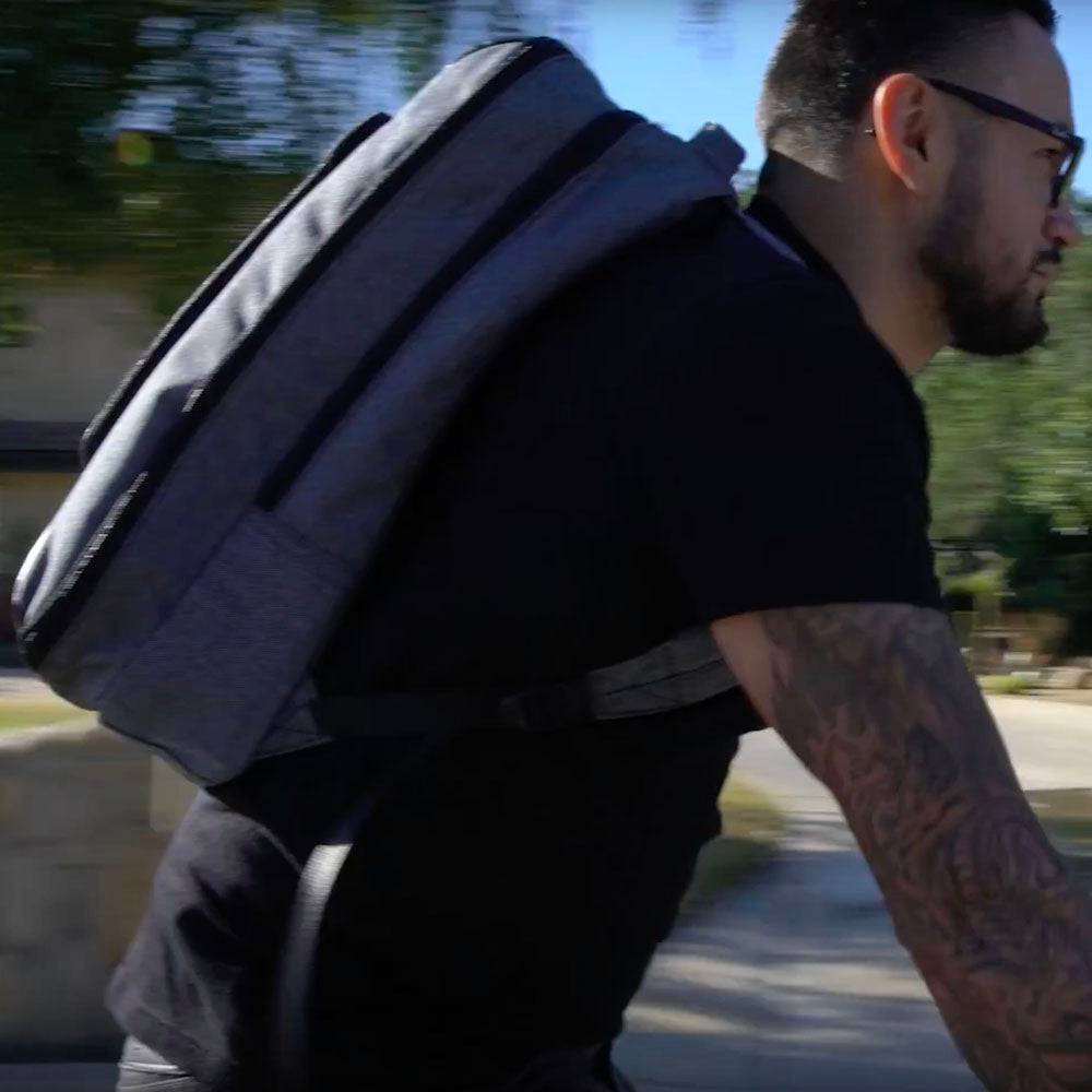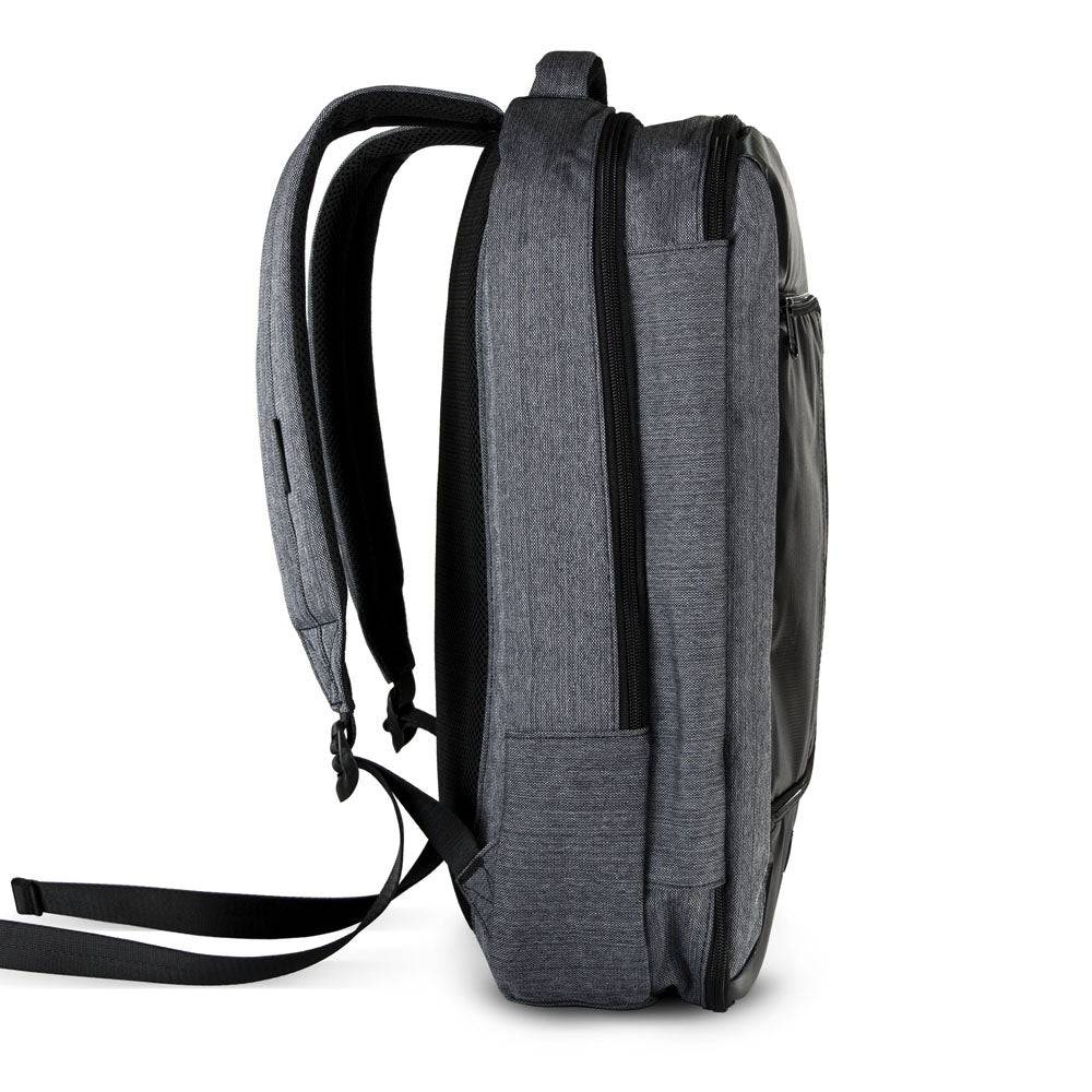 - Durable heathered gray material made from recycled water bottles