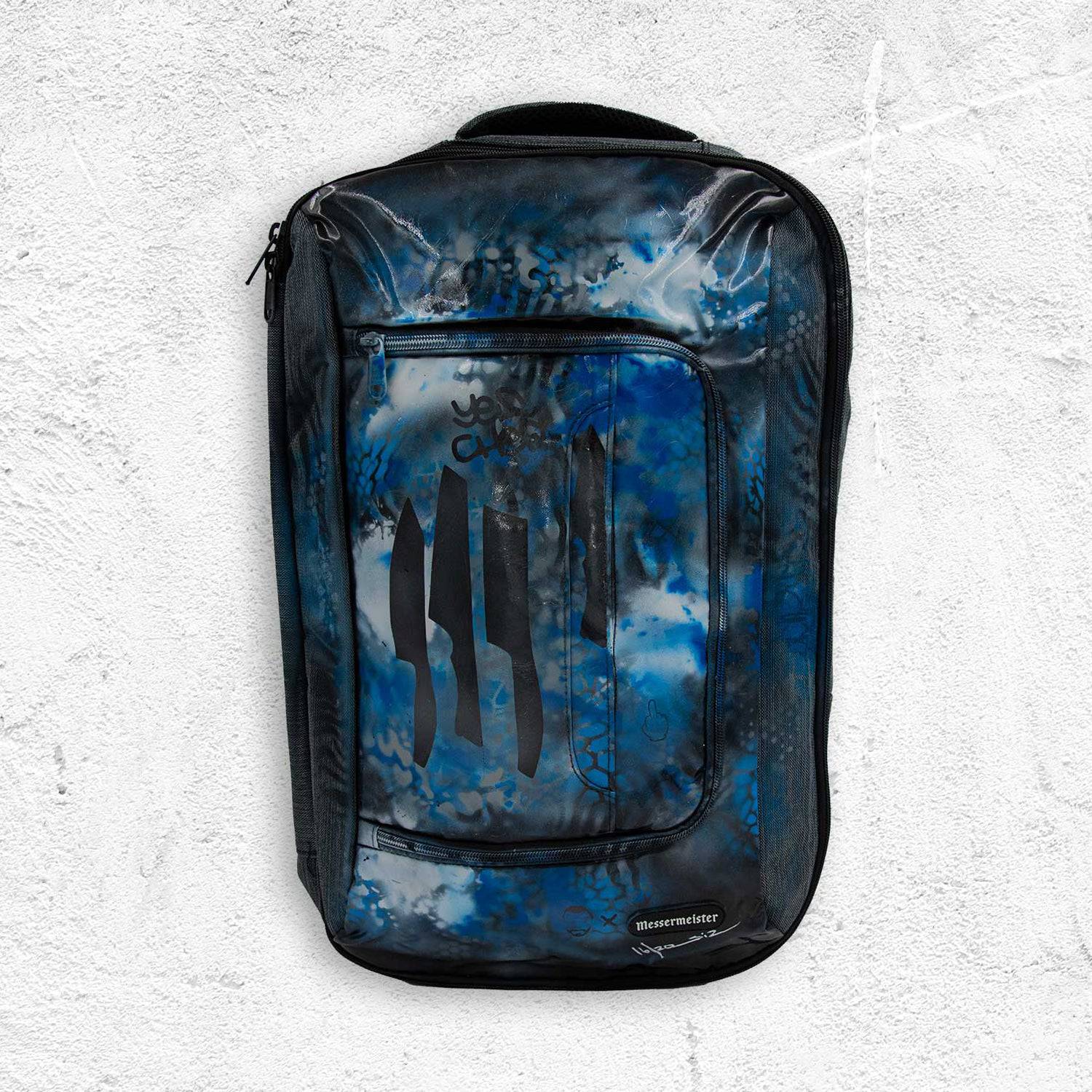 - For all Messermeister knife luggage products: Wipe with a damp sponge and water only. Do not run through a washing machine or submerge in water
