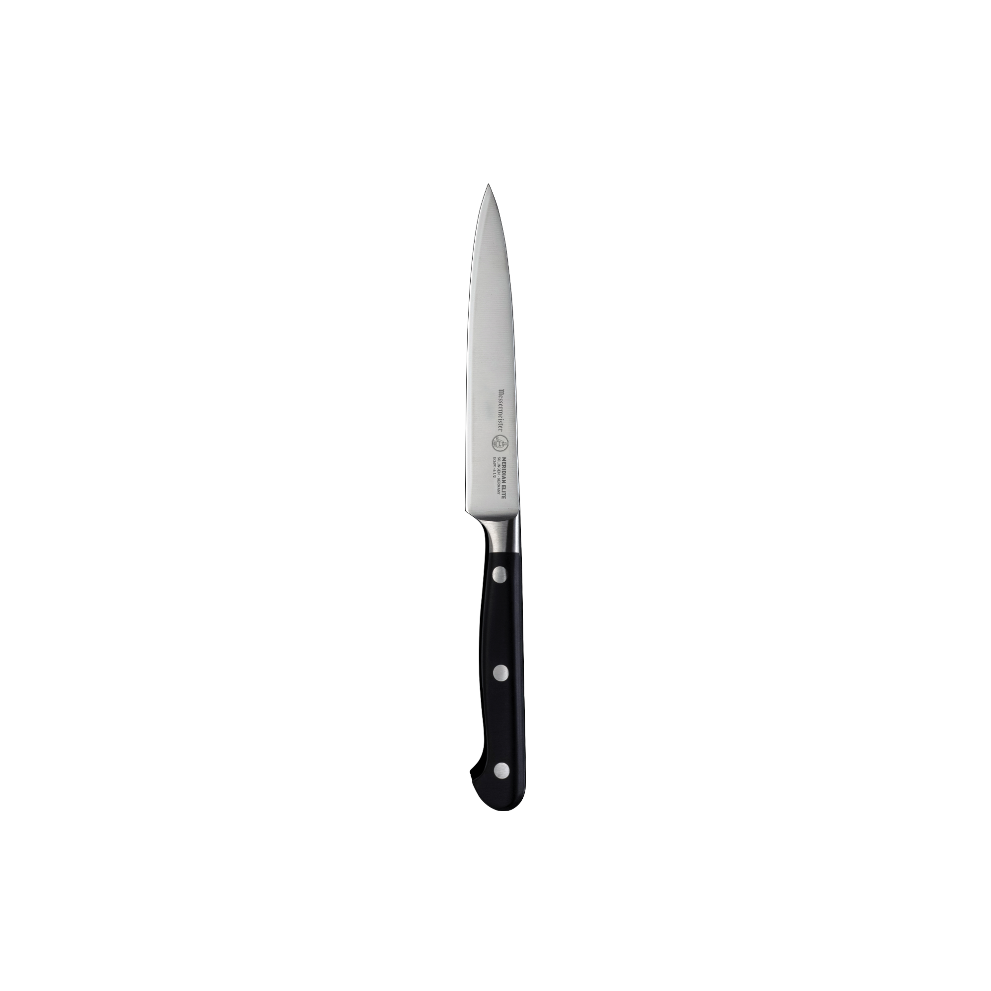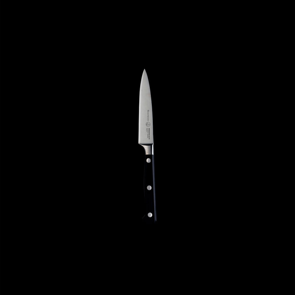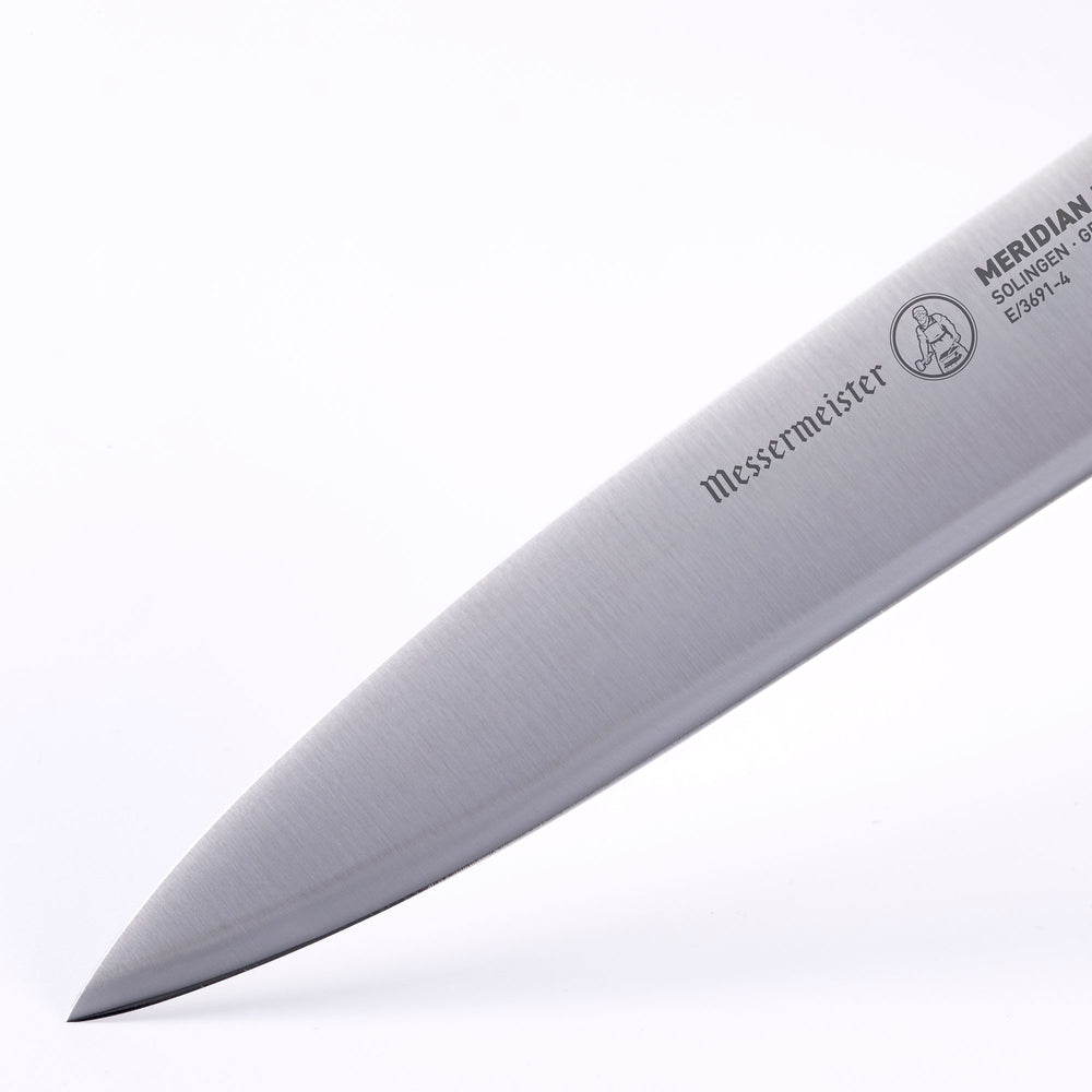 Need a little more reach without losing control? Enter the Meridian Elite 4” Spear Point Paring Knife. The slightly extended blade offers more versatility—ideal for segmenting citrus, scoring pastry, or trimming proteins. Forged in Germany with razor-sharp precision, this knife delivers excellent balance and edge retention in a compact, maneuverable form.
