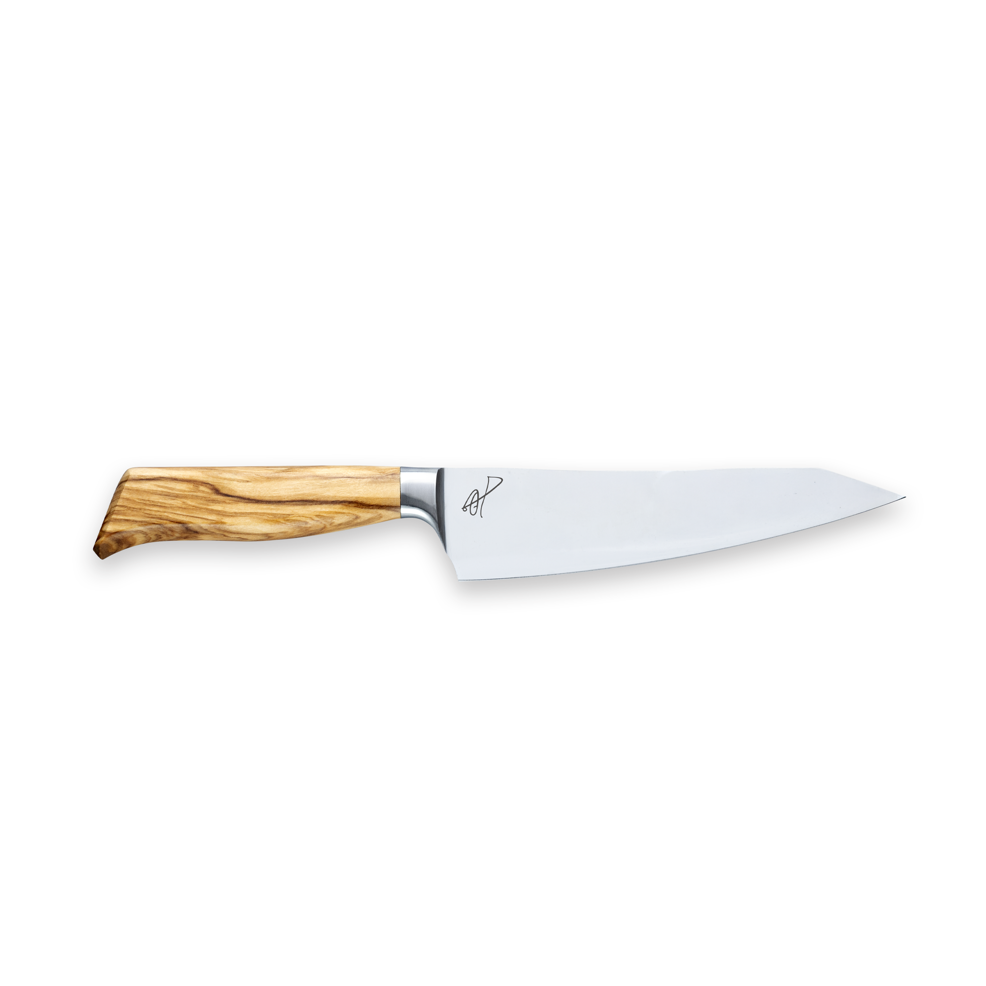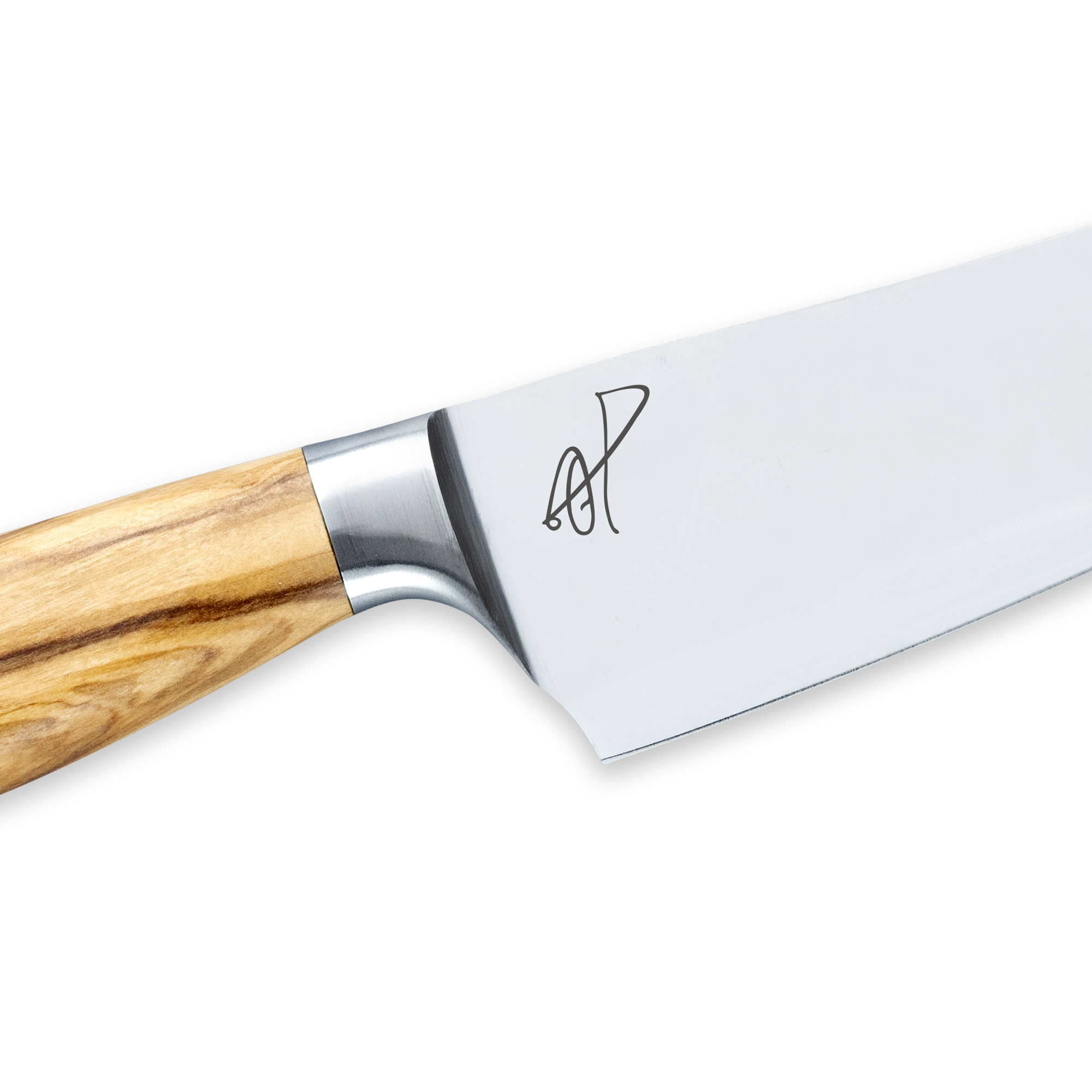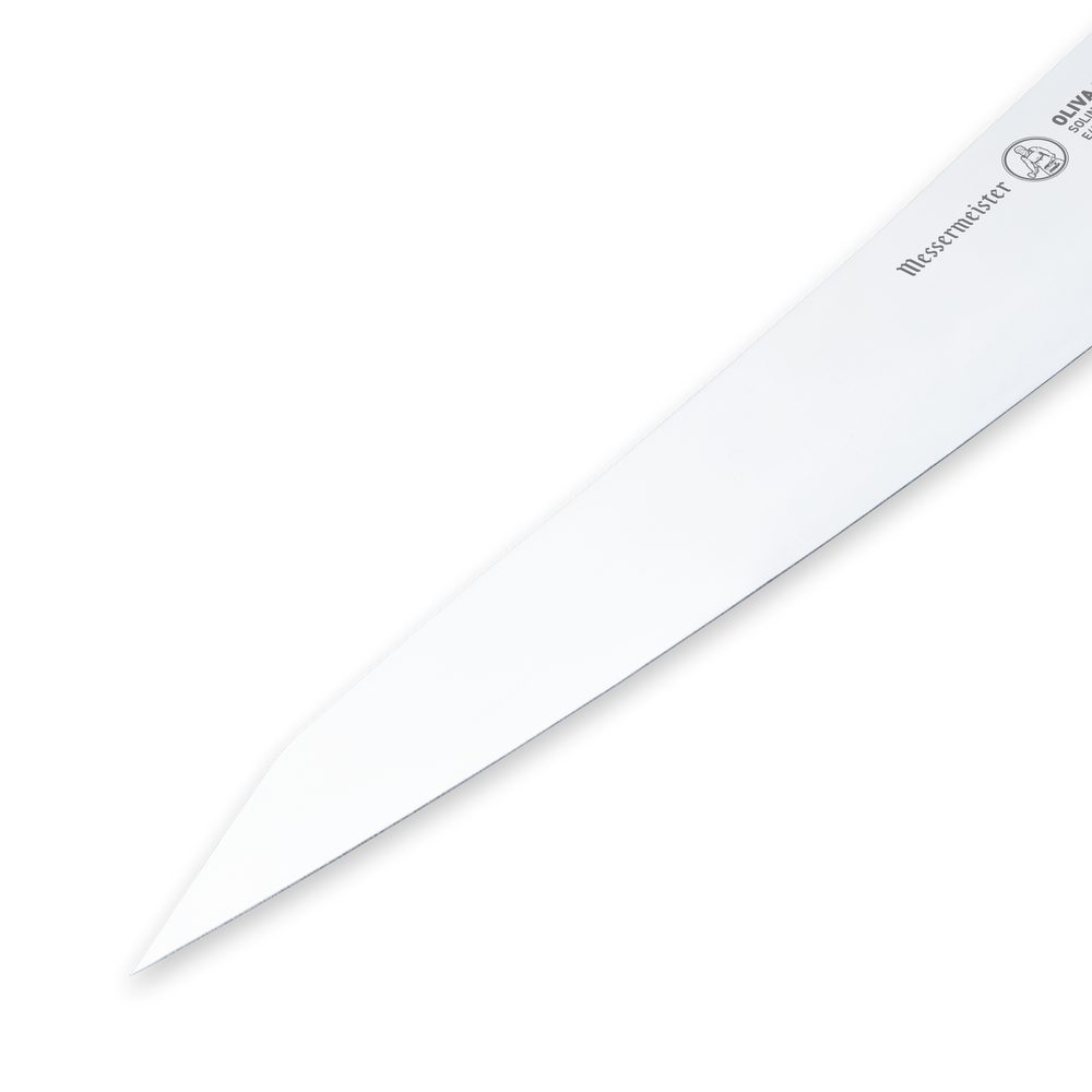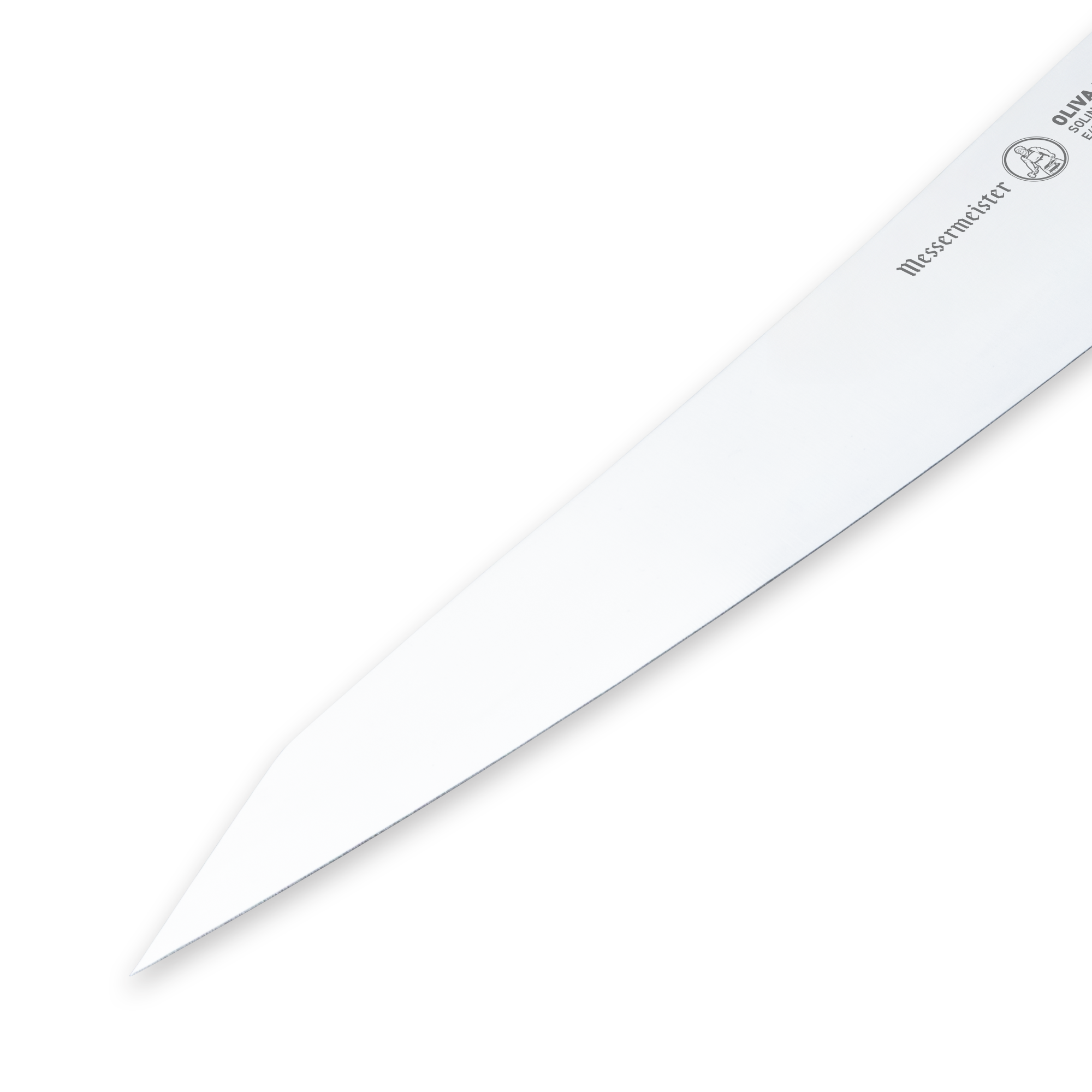 Introducing the O.T. Prep Knife from Messermeister’s Oliva Elite Collection, created in collaboration with chef Olivia Tiedemann. Just like Olivia, this knife is edgy, bold, and built for the grind of everyday prep. Forged in Solingen, Germany from high-performance 1.4116 steel, it’s sturdy enough to handle the power moves of a chef’s knife yet thin and agile enough to fillet fish with finesse. Its Mediterranean olive wood handle brings natural beauty and a comfortable grip, making it the perfect companion for long prep sessions. Quickly becoming Olivia’s go-to blade, the O.T. Prep Knife excels at everything from breaking down herbs and vegetables to slicing proteins with precision—making it the ultimate workhorse for any kitchen.
