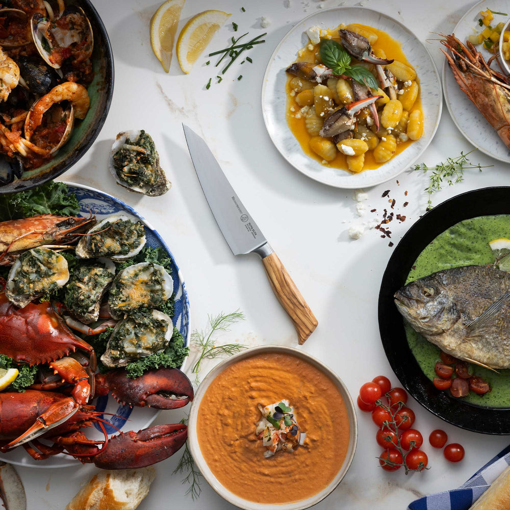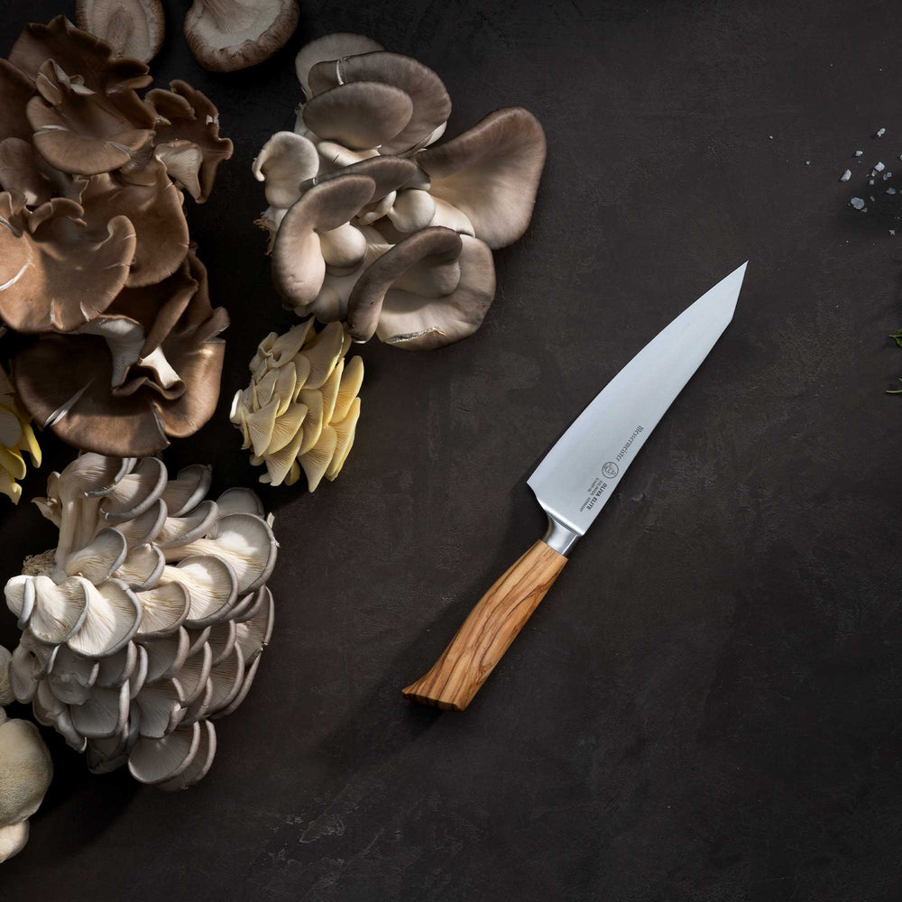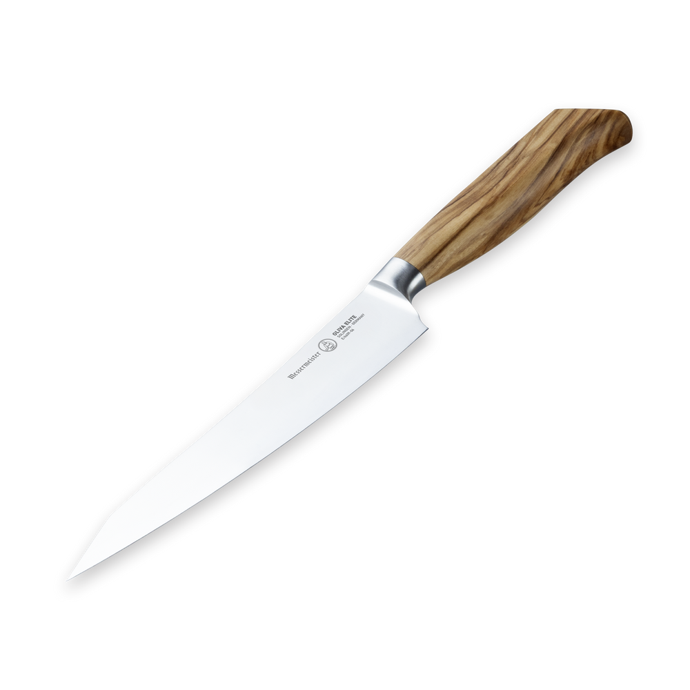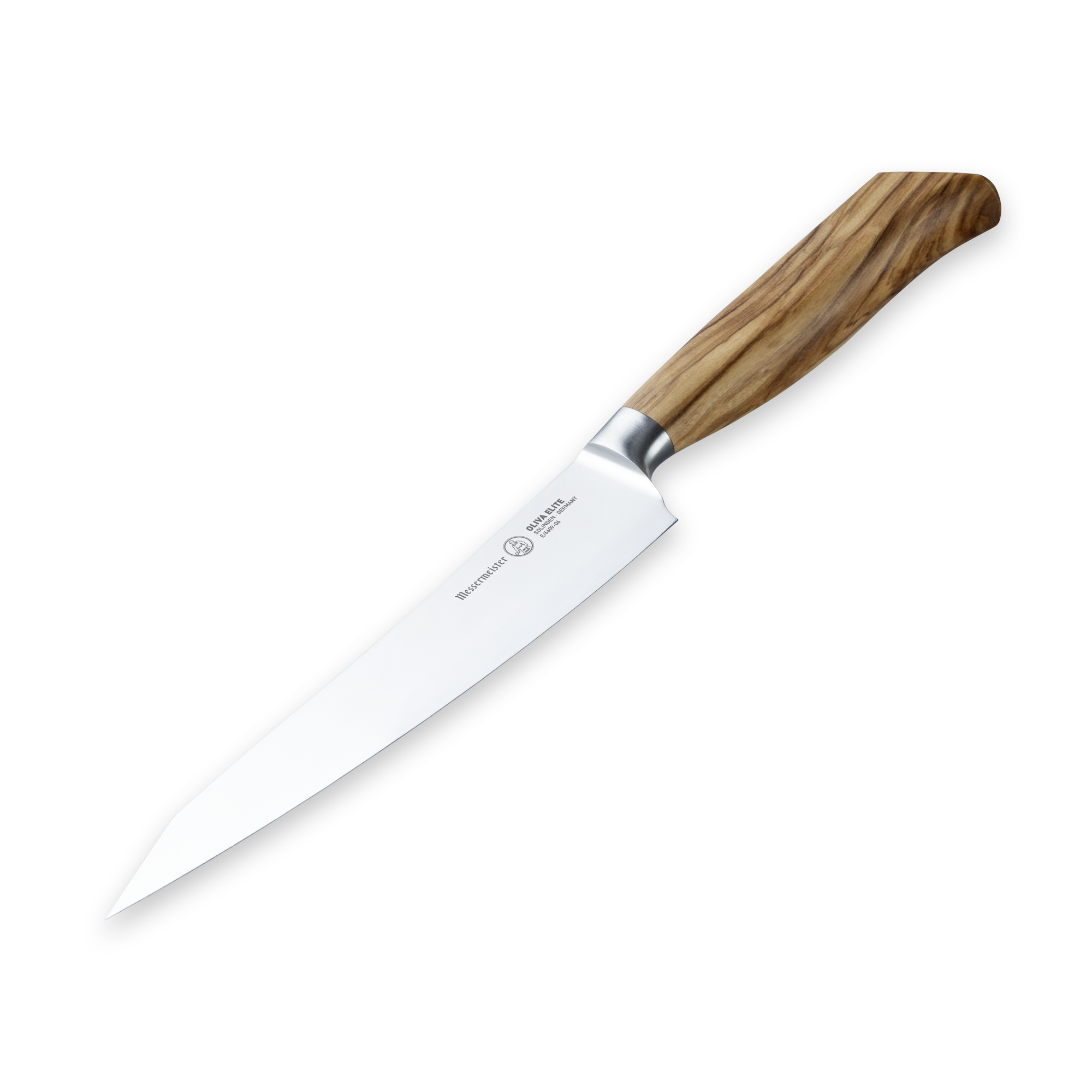 Introducing the O.T. Prep Knife from Messermeister’s Oliva Elite Collection, created in collaboration with chef Olivia Tiedemann. Just like Olivia, this knife is edgy, bold, and built for the grind of everyday prep. Forged in Solingen, Germany from high-performance 1.4116 steel, it’s sturdy enough to handle the power moves of a chef’s knife yet thin and agile enough to fillet fish with finesse. Its Mediterranean olive wood handle brings natural beauty and a comfortable grip, making it the perfect companion for long prep sessions. Quickly becoming Olivia’s go-to blade, the O.T. Prep Knife excels at everything from breaking down herbs and vegetables to slicing proteins with precision—making it the ultimate workhorse for any kitchen.