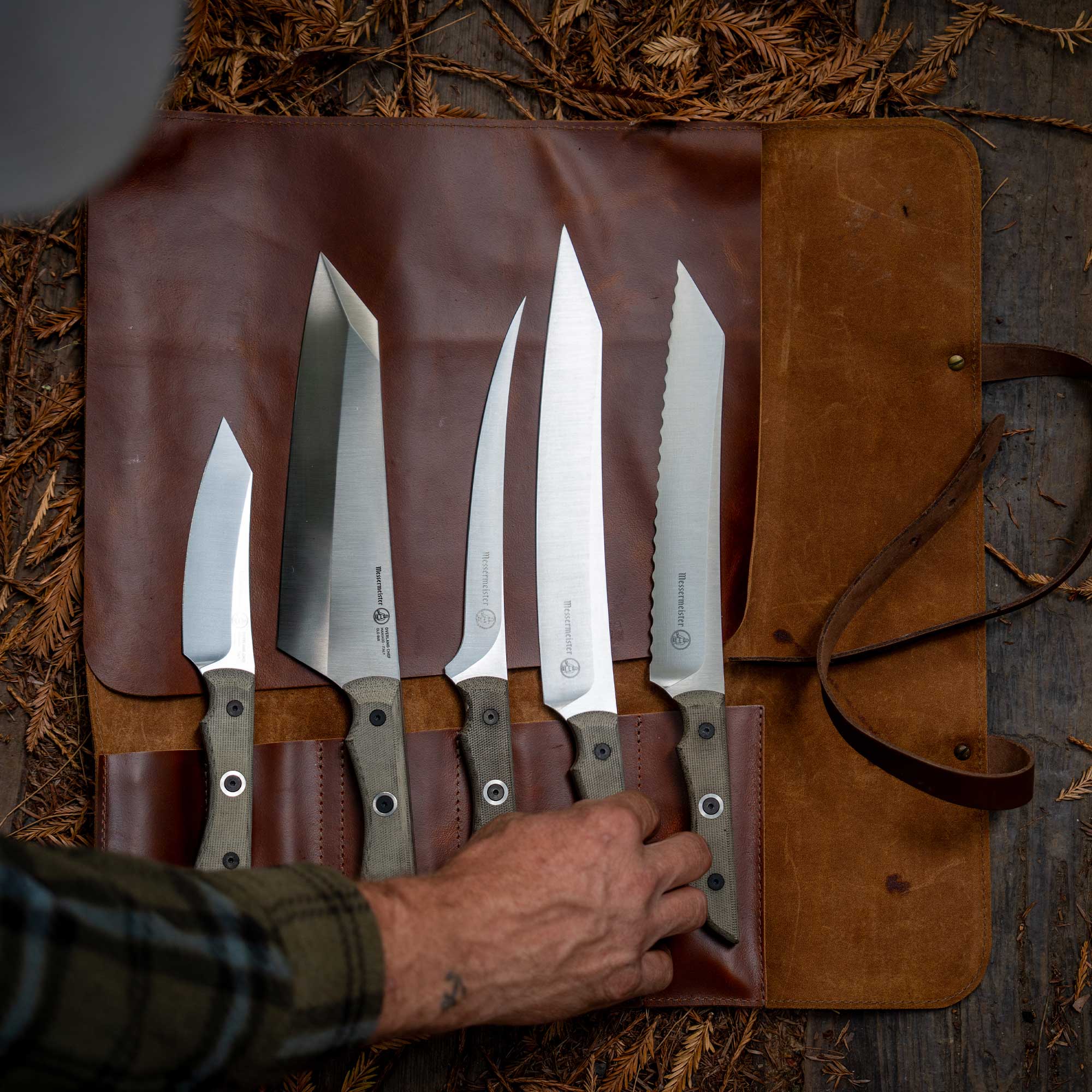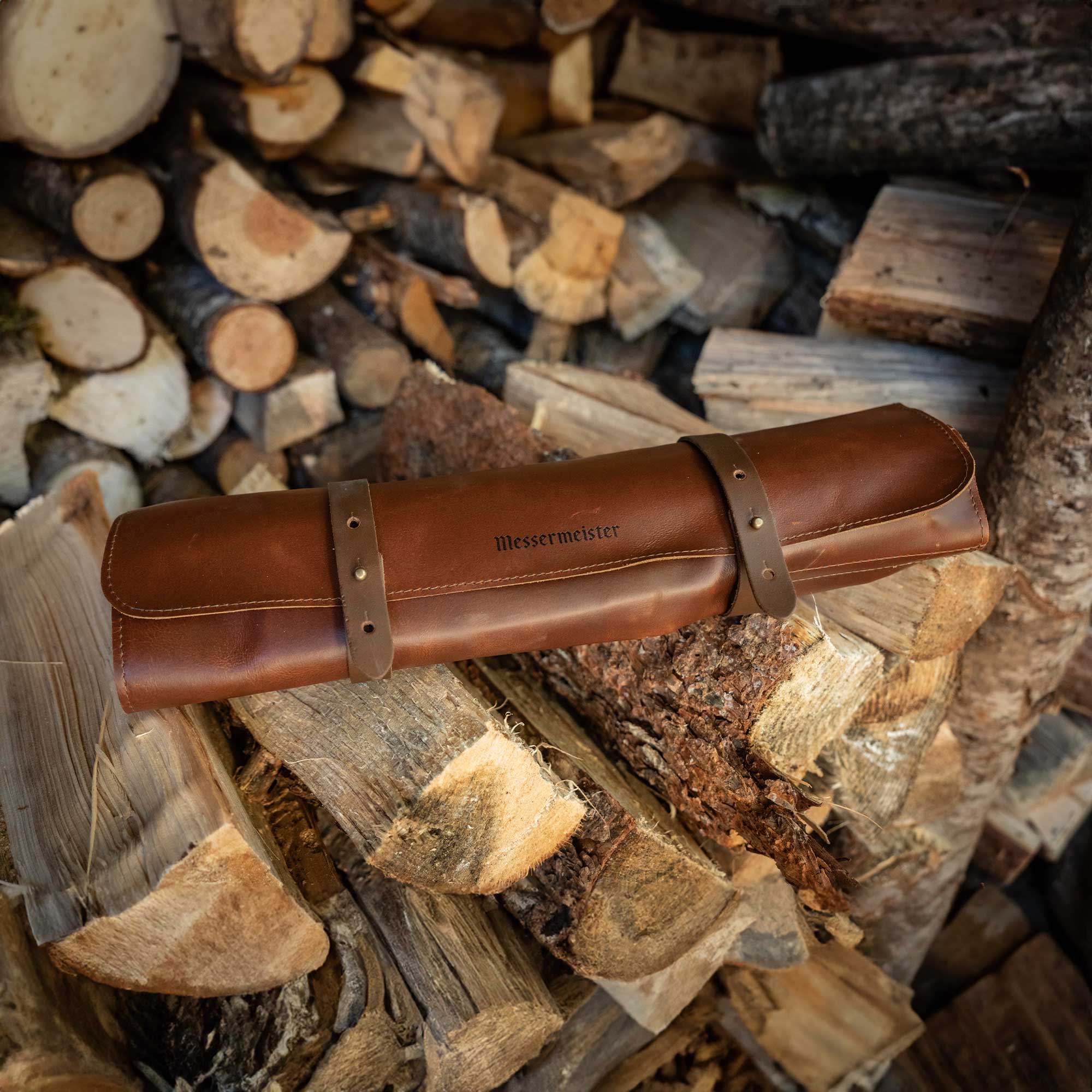 Crafted in the Netherlands and designed for the Messermeister Overland Chef series, this premium 5-pocket leather knife roll is built for chefs who take their craft off the grid. The rich, full-grain leather is rugged enough for outdoor cooking yet refined enough for professional kitchens, developing a beautiful patina with every adventure. Five secure pockets keep your essential blades protected and organized on the move. Whether you’re cooking fireside, trailside, or tableside, this heirloom-quality roll delivers durability, style, and dependable function. Knives not included.