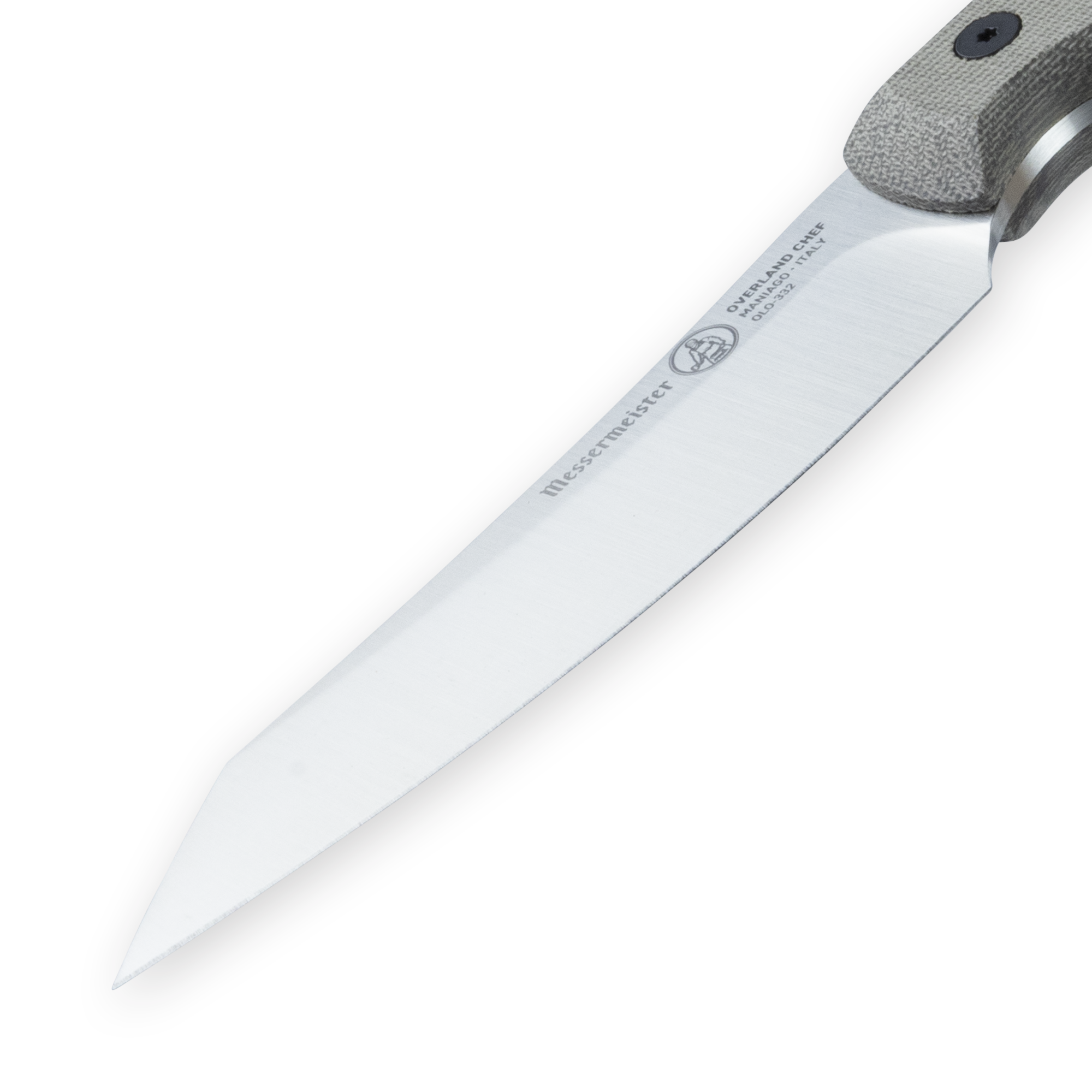 Don’t let the size fool you—the Messermeister Overland Chef 4.5" Utility Knife punches way above its weight. Designed with a compact 4.5" hollow-ground blade and crafted from ultra-tough, razor-sharp Nitro cobalt steel (hardened to 62 Rockwell), this knife offers the precision of a paring knife with the cutting power of a much larger blade. A swept edge geometry and cambered handle deliver an incredibly balanced feel, while a subtle blade offset ensures plenty of hand clearance. Solid without feeling bulky, it’s the knife you’ll instinctively grab for every kitchen task—from campsite prep to daily slicing. Once it’s in your hand, you won’t want to put it down.